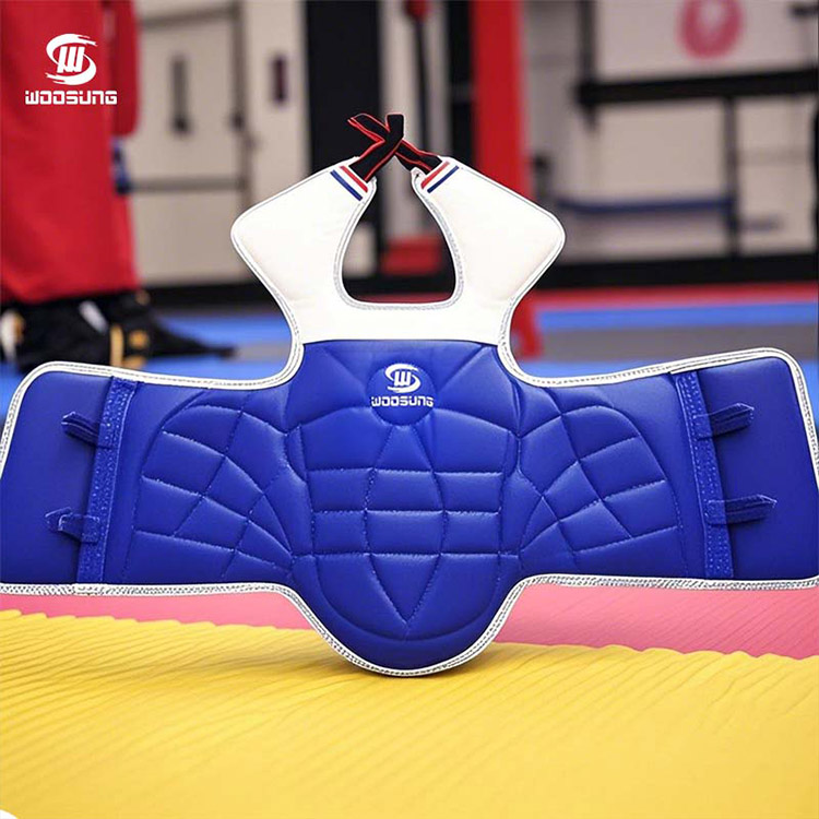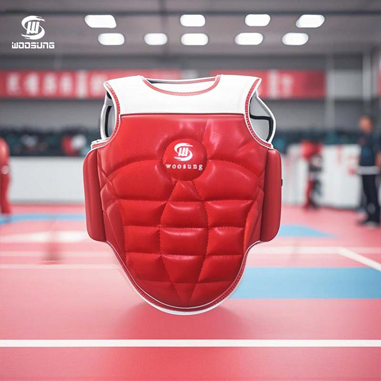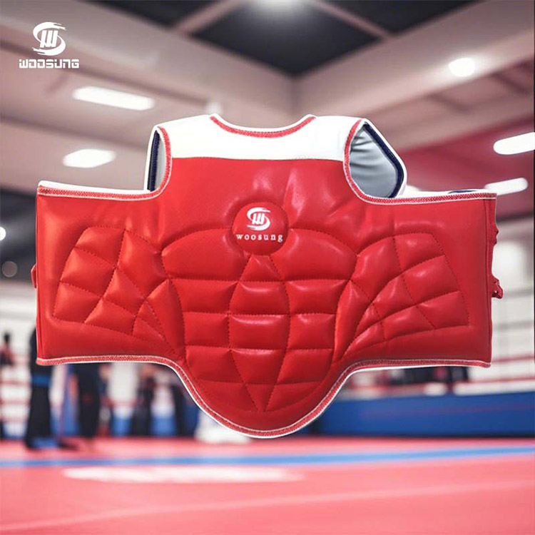De Muscle Taekwondo-borstbeschermer van WOOSUNG®-leverancier combineert een ergonomisch ontwerp met hoogwaardige beschermende technologie. Gemaakt van zorgvuldig geselecteerde zachte, elastische en slijtvaste materialen, en voorzien van zeer ademende stof, houdt het het lichaam droog, zelfs tijdens lange perioden van intensieve training, en biedt het uitgebreide torsobescherming voor Taekwondo-enthousiastelingen en professionele atleten, waarbij ultieme bescherming in evenwicht wordt gebracht met bewegingsvrijheid.