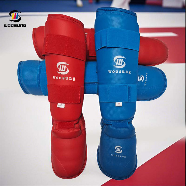 WOOSUNG's Shin Guard Karate Up to Knee is ontworpen voor karate-sparring met hoge intensiteit. Door ergonomisch en biomechanisch onderzoek te combineren, bieden de unieke structuur van de halve laars en de verlenging tot over de knie uitgebreide bescherming voor het scheenbeen, de wreef en het kniegewricht.