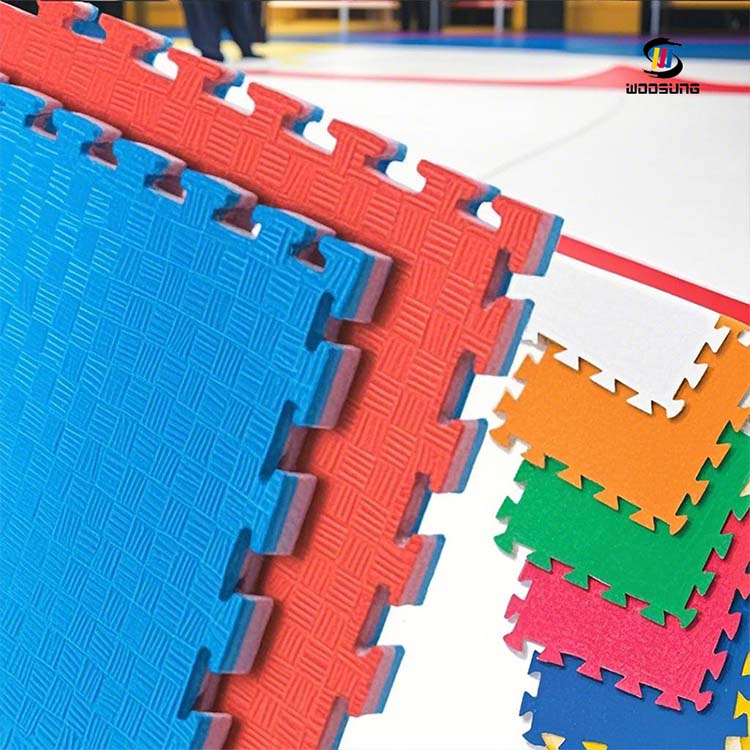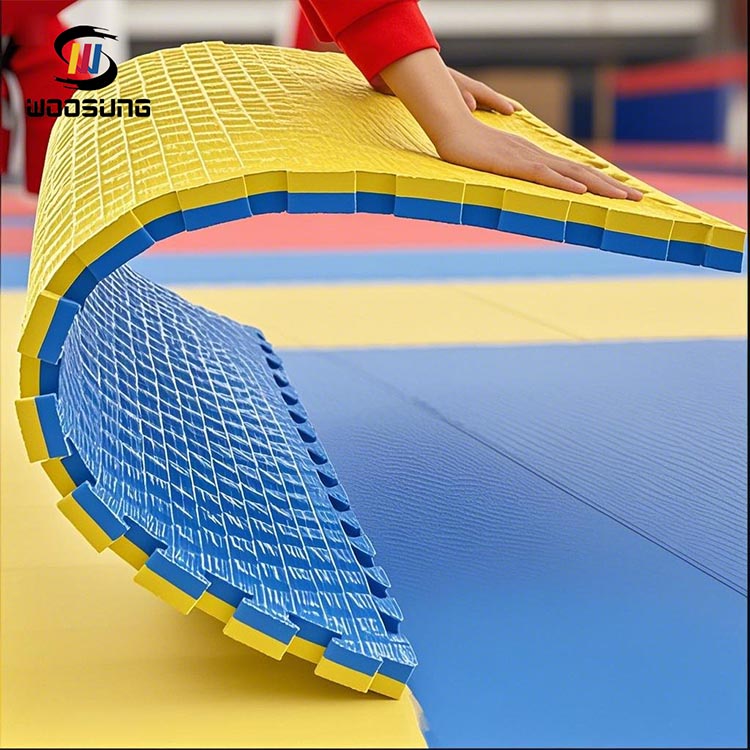 Als expert op het gebied van de productie van Taekwondo-tatamimatten met 25 jaar ervaring op het gebied van vechtsportuitrusting, voorziet WOOSUNG wereldwijde dojo's van vloersystemen die voldoen aan de internationale concurrentienormen. Onze ontwikkelde EVA-composietstructuur met ultrahoge dichtheid lost de problemen op waarbij traditionele matten gevoelig zijn voor verschuiven en een snelle achteruitgang van de elasticiteit ervaren, terwijl ook een aanzienlijke verbetering van de milieuveiligheid wordt bereikt.